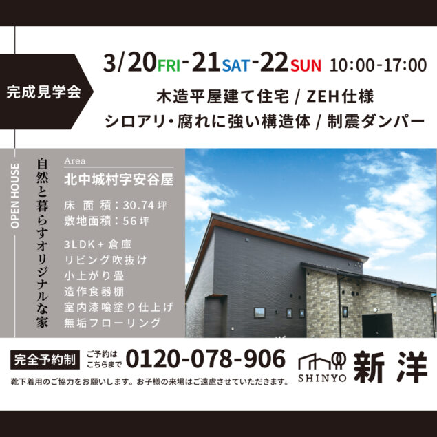 木造住宅 完成見学会【3月20日(fri)– 3月22日(sun)】